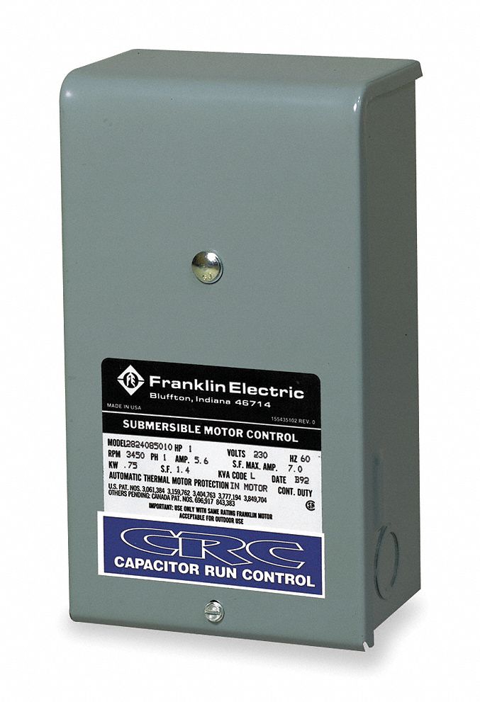 Franklin electric submersible control boxes are designed and optimized specifically for franklin three wire single phase motors rated 1 3 to 15 hp. Turn a multimeter to the ohm setting. Bluecatele 59 71 mfd uf motor start capacitor compatible for franklin control box 2801054915 crc 2824075015 1 2 and 3 4 hp well pump and others 4 8 out of 5 stars 12. 4 9 out of 5 stars 22.