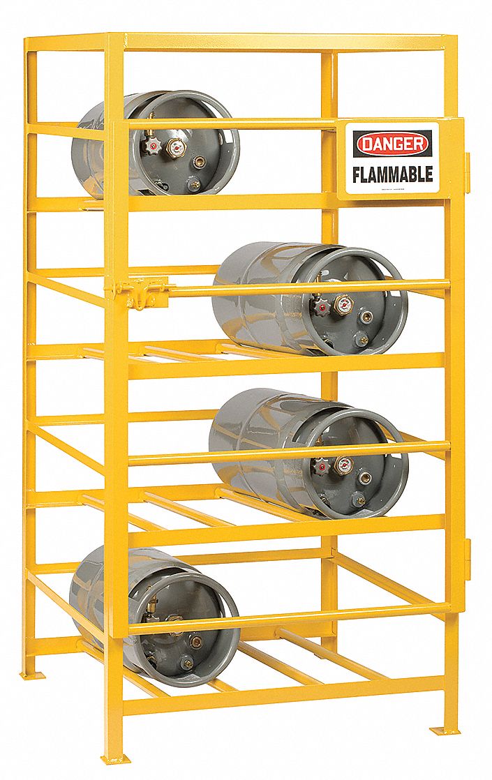 With our heavy duty gas cylinder racks you can store and secure gas cylinders. Per 29 cfr 1910 101 b the in plant handling storage and utilization of all compressed gas cylinders must be in accordance with cga pamphlet p 1 standard for safe handling of compressed gases in containers revised march 23 2015. The most common type of lp gas container is the propane cylinder commonly referred to as a bottle. Base includes lag holes for securing unit to floor.